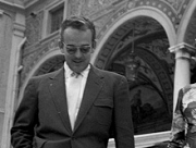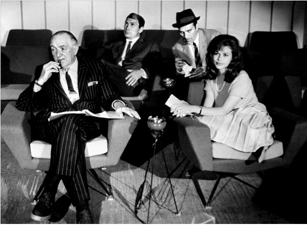 ギリシア叙事詩、オデュッセイアの映画化という壮大なプロジェクトに取り組むが、傲慢なハリウッドのプロデューサー(左後ろ)とことごとく対立する。